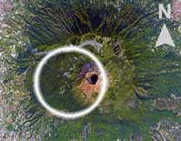 L'eruzione pliniana delle Pomici di Base determinò la distruzione di gran parte dell’edificio del Somma e la formazione di una estesa caldera. Il centro eruttivo era localizzato ad Ovest dell'attuale cratere ad una distanza compresa tra 1 e 2.5 km (cerchio bianco nell'immagine a lato).